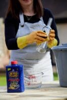 2.Wear some rubber gloves for protection. Dip a cloth, sponge or stiff brush inside the solution and use it on the inside and outside of the glass bottles. Then rinse the bottles and allow it to completely dry.