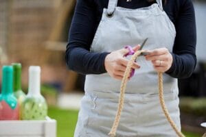 10.Cut hemp rope to 30cm in length and join the ends with a strong, durable exterior tape. We used black colour tape and added small white dots on it using a white POSCA pen for finishing touches.