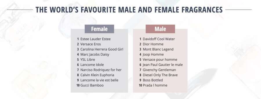 The World’s Favourite Male And Female FragrancesLooking at the brands that feature most, fragrances by Lancome make two appearances in the female list. Both Lancome Idole and La Vie Est Belle clearly resonate with women from around the globe.