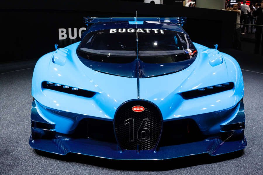 Frankfurt, Deutschland – September 15, 2015: Bugatti Vision Gran Turismo Concept presented on the 66th International Motor Show in the Messe Frankfurt
